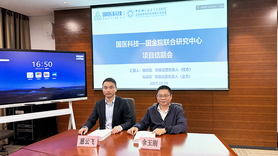 10月19日,国医科技-中国科大国金院联合研究中心课题结题交流会成功举行。中国科大管理学院讲席教授、安徽省数智供应链重点实验室主任余玉刚,国医科技总裁慈云飞率双方核心团队出席,围绕课题成果进行系统总结与交流。本次结题标志着双方在医疗SPD(医用物资供应链管理)领域的首期产学研合作取得实质性突破,为行业智能化升级提供了扎实的理论支撑与实践范式。