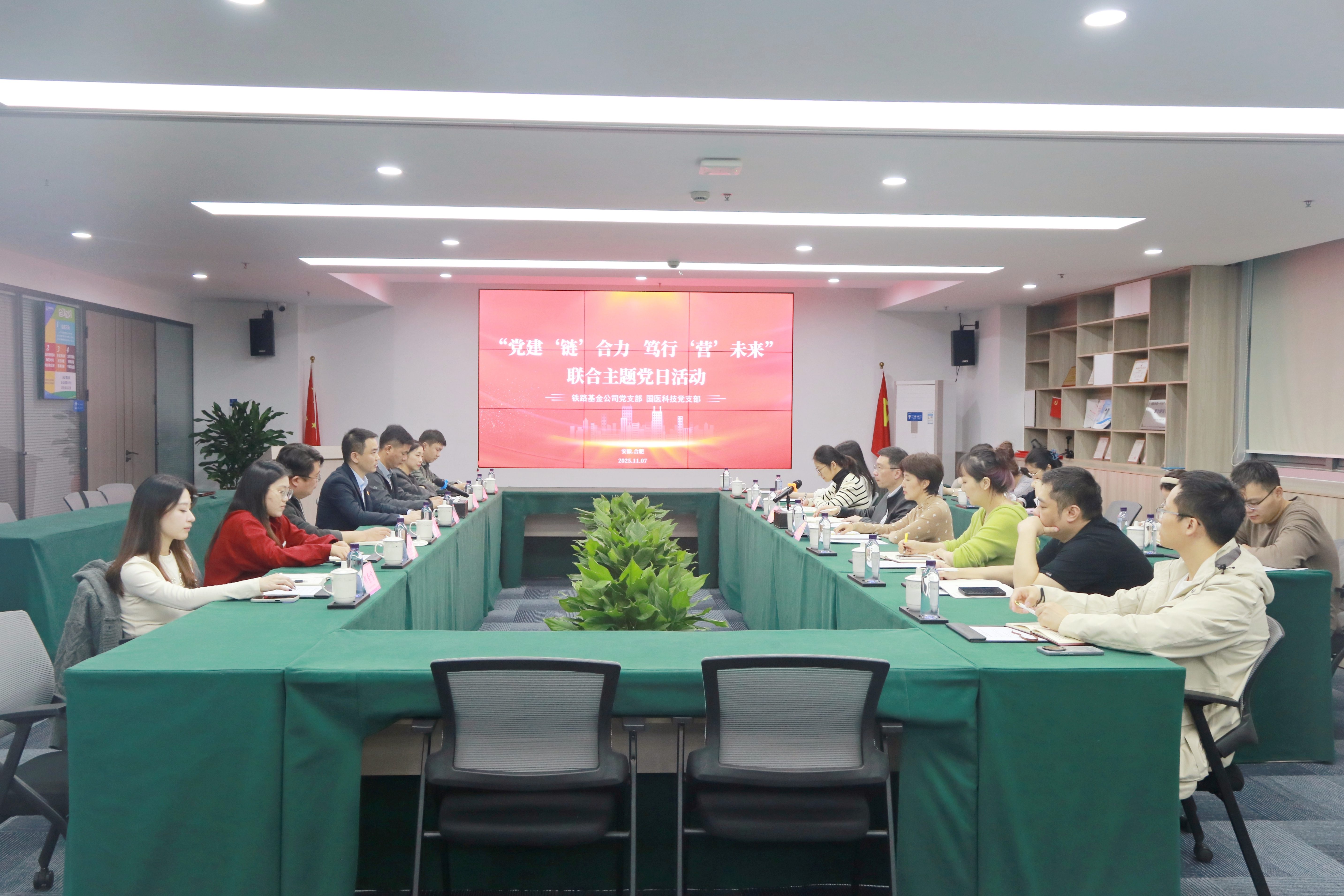 为深化党建引领、汇聚发展动能,11月7日,铁路基金公司党支部第二党小组与国医科技党支部联合开展共建活动。铁路基金公司党支部副书记、总经理方荣,宣传委员、副总经理李弘焱,国医科技总裁慈云飞以及双方党员代表共同参加。