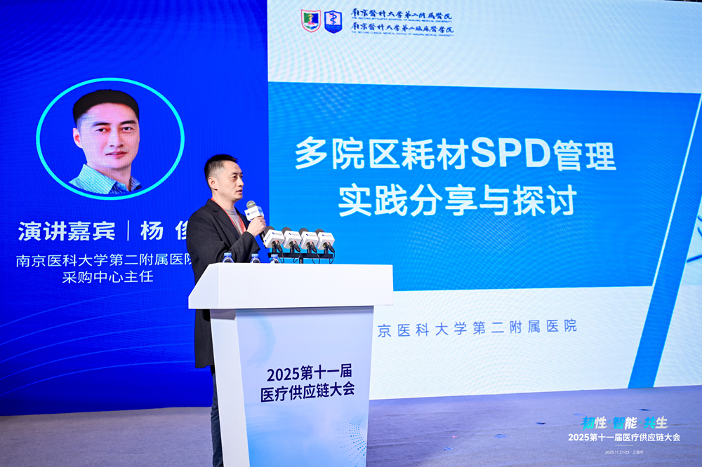 在近期举办的2025第十一届医疗供应链大会上,南京医科大学第二附属医院采购中心主任杨俊应邀作《多院区耗材SPD管理实践分享与探讨》主题报告,系统分享了医院在多院区医用耗材SPD管理方面的创新举措与实践成果,为行业内公立医院医用物资精细化管理提供了可借鉴的实践经验。