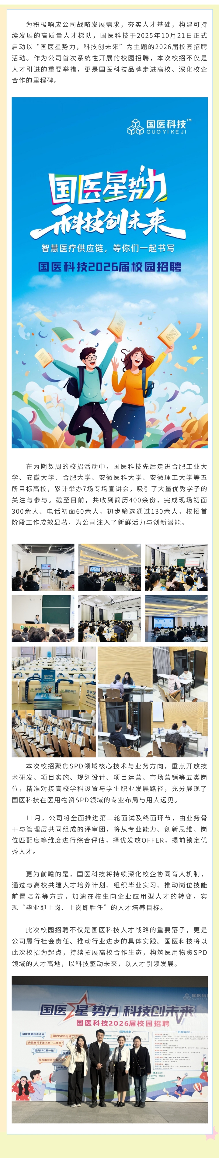 国医星势力,科技创未来|国医科技2026届校园招聘首战告捷,蓄力人才新生态